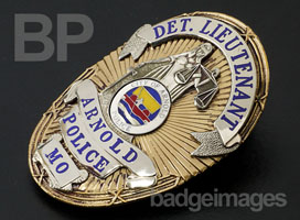 | 実際に使用されていたバッジですので使用感あり。ミズーリ州アーノルドPD。珍しい刑事警部補ランク。刑事の中の上級ランクです。この刑事管理職ランクはボストン市警察でも使われています。 |